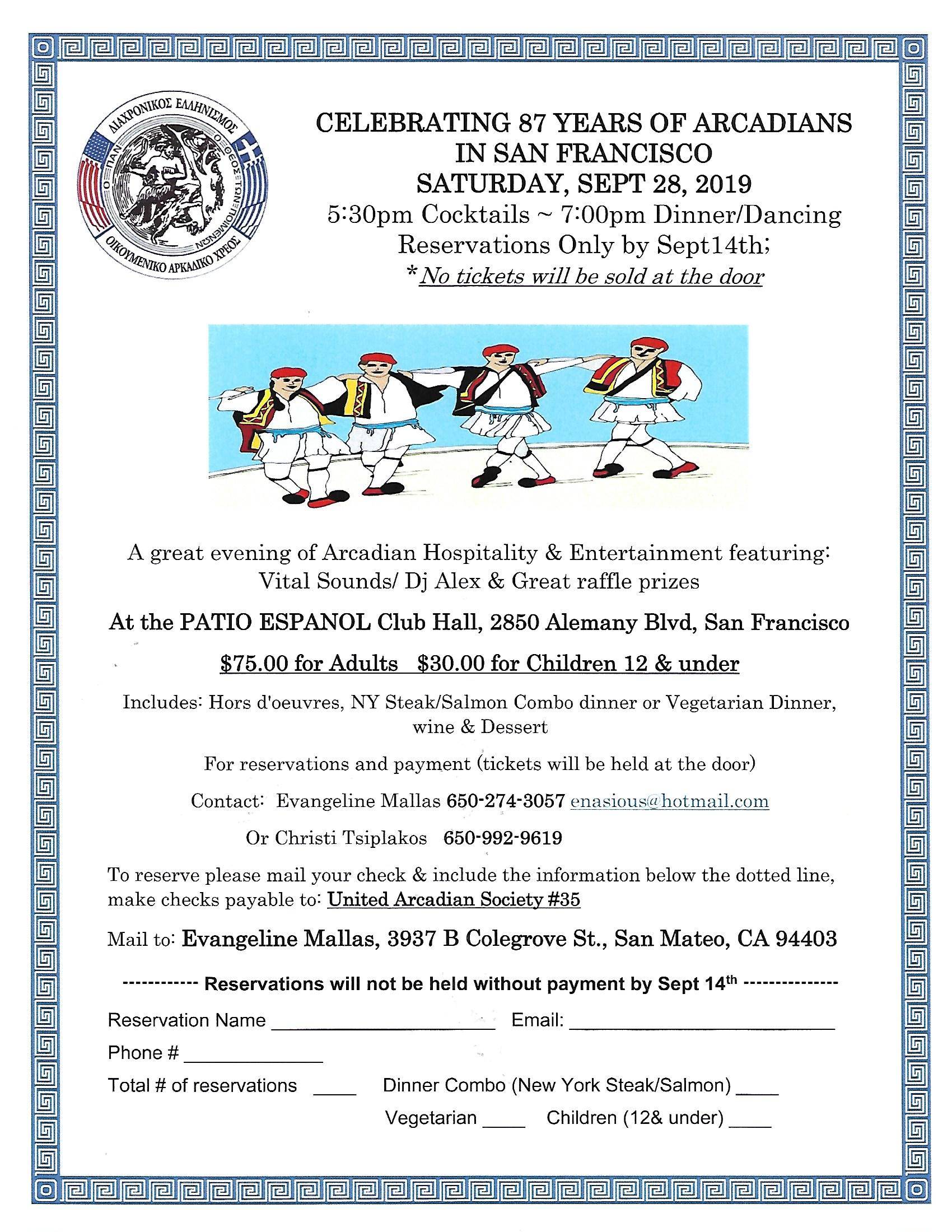 For reservations contact Kostas Kapogianis (714-726-7383). Download the flyer to the right for additional details and reservation information.